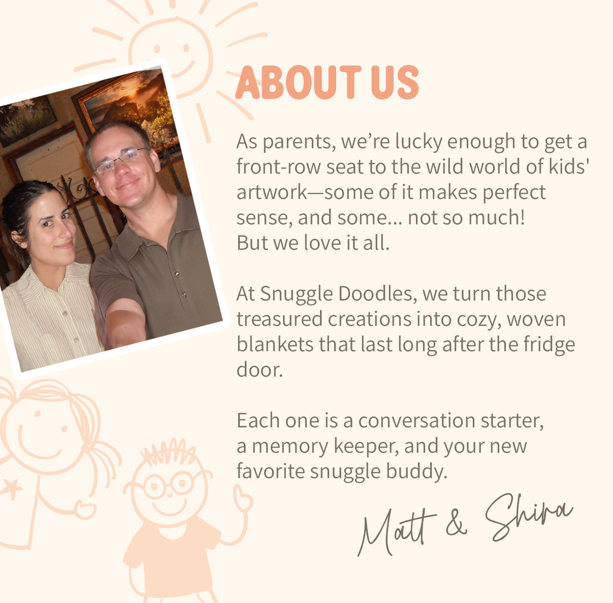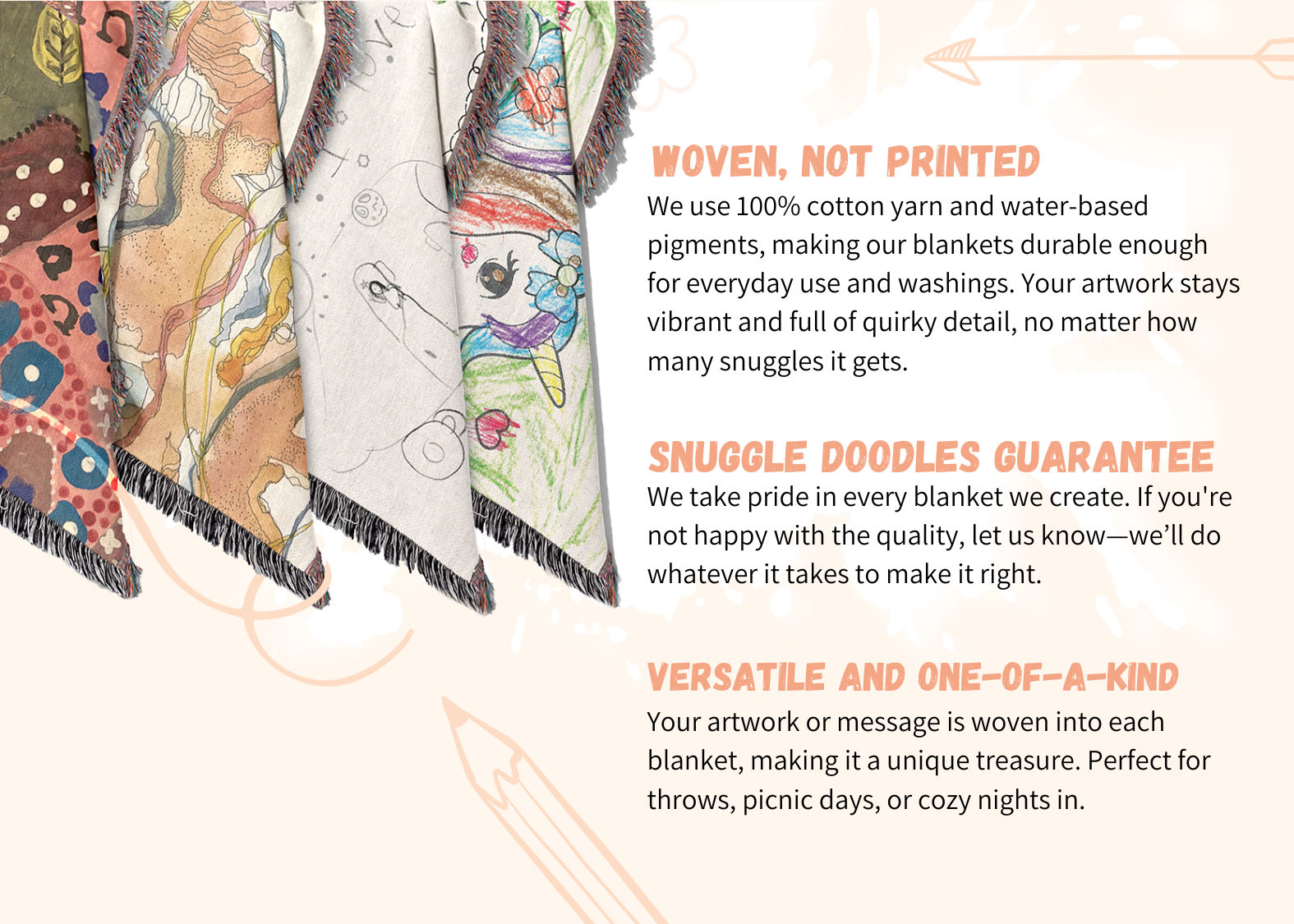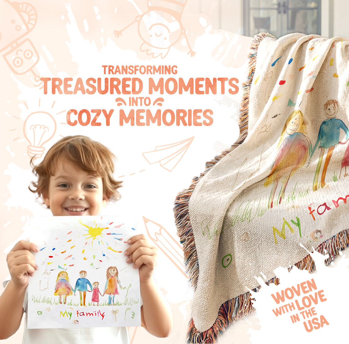 At Snuggle Doodles, we turn those treasured creations into cozy, woven blankets that last long after the fridge door.